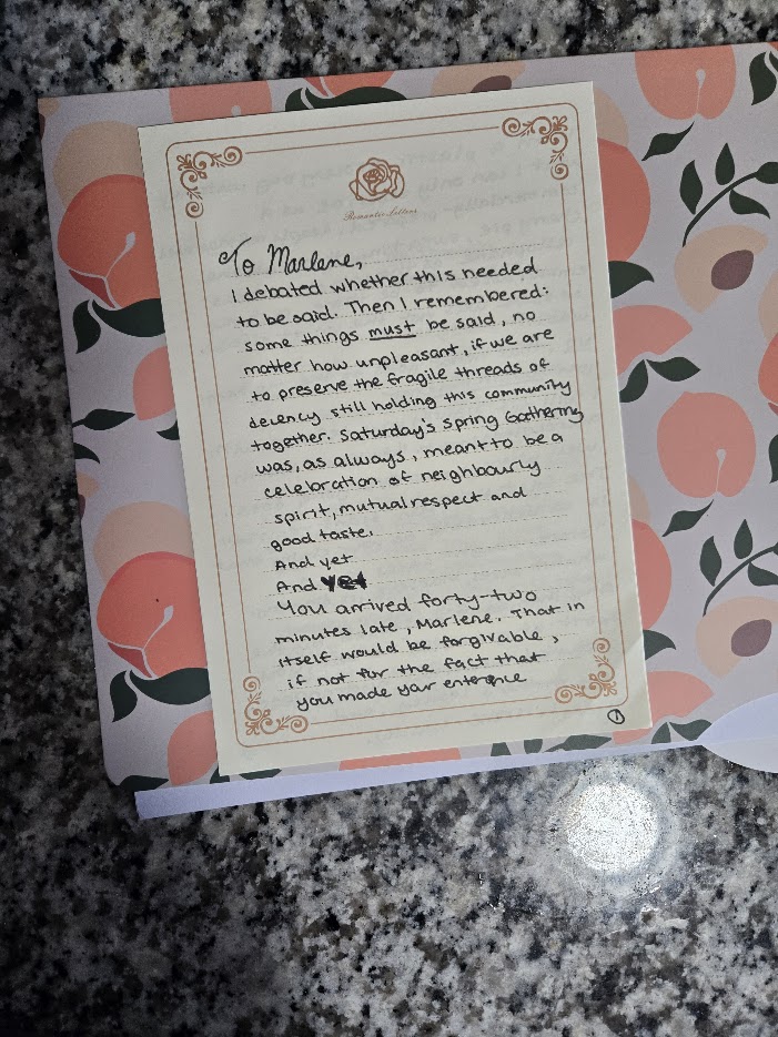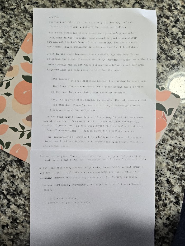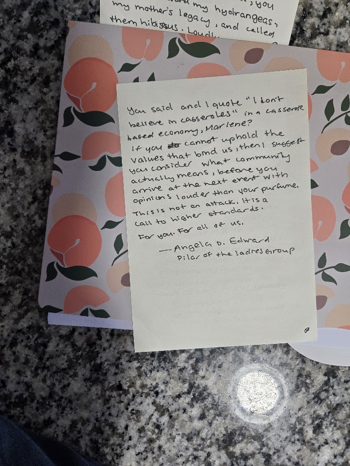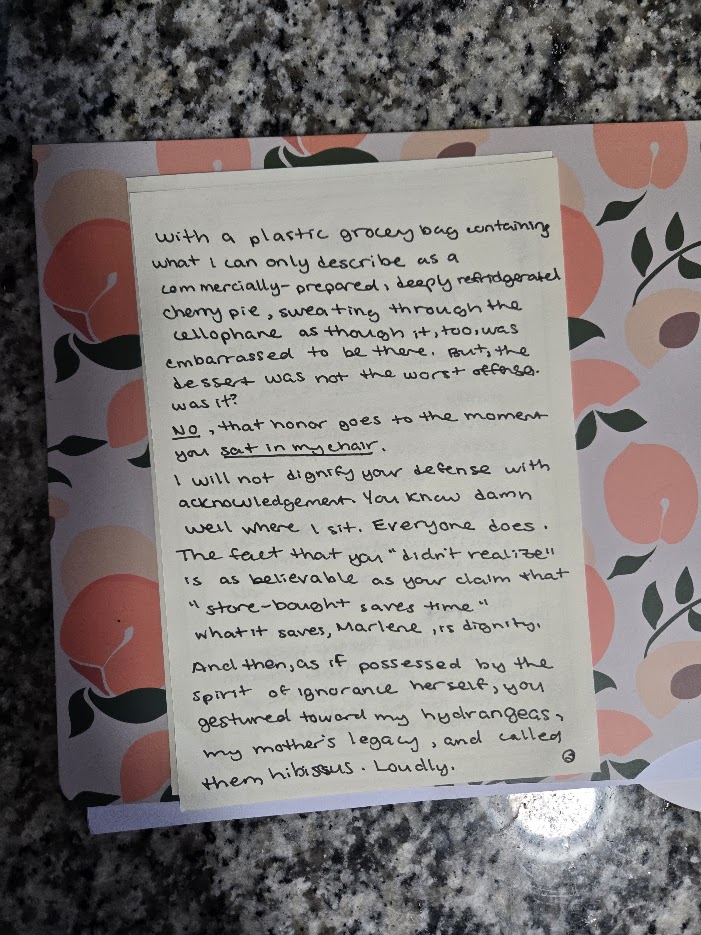 A cherry pie, a stolen chair, and the unholy audacity of calling hydrangeas hibiscus.Angela believes in community values. Marlene believes in microwave desserts and vengeance.