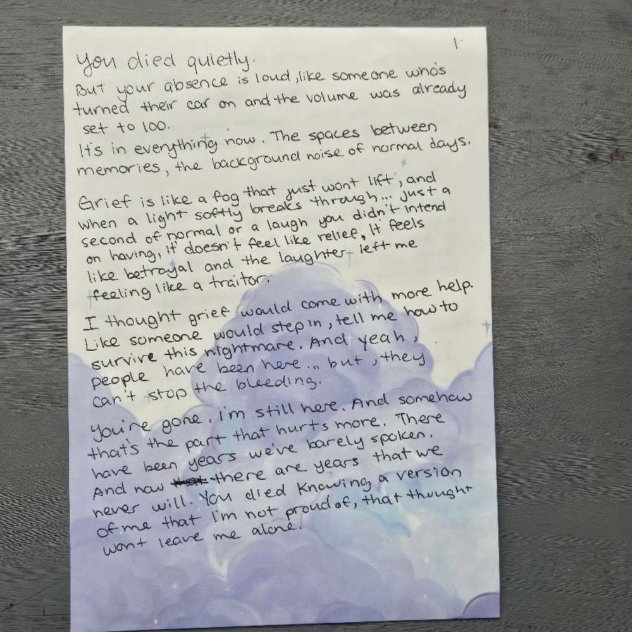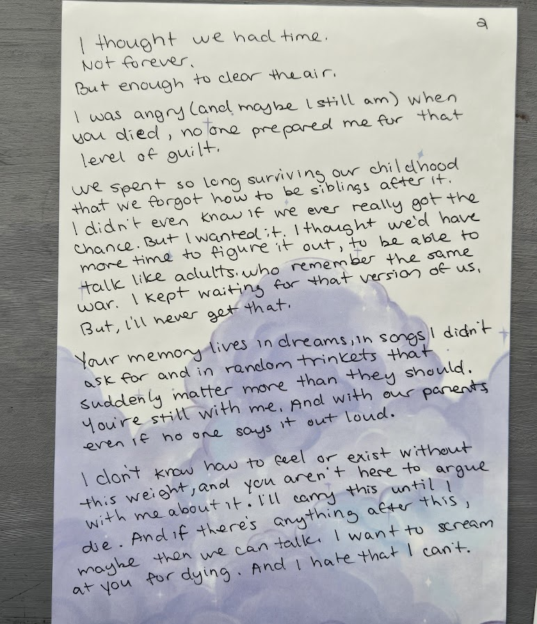 It’s a jagged piece of glass, written by a sister for the brother she didn’t get to finish knowing.