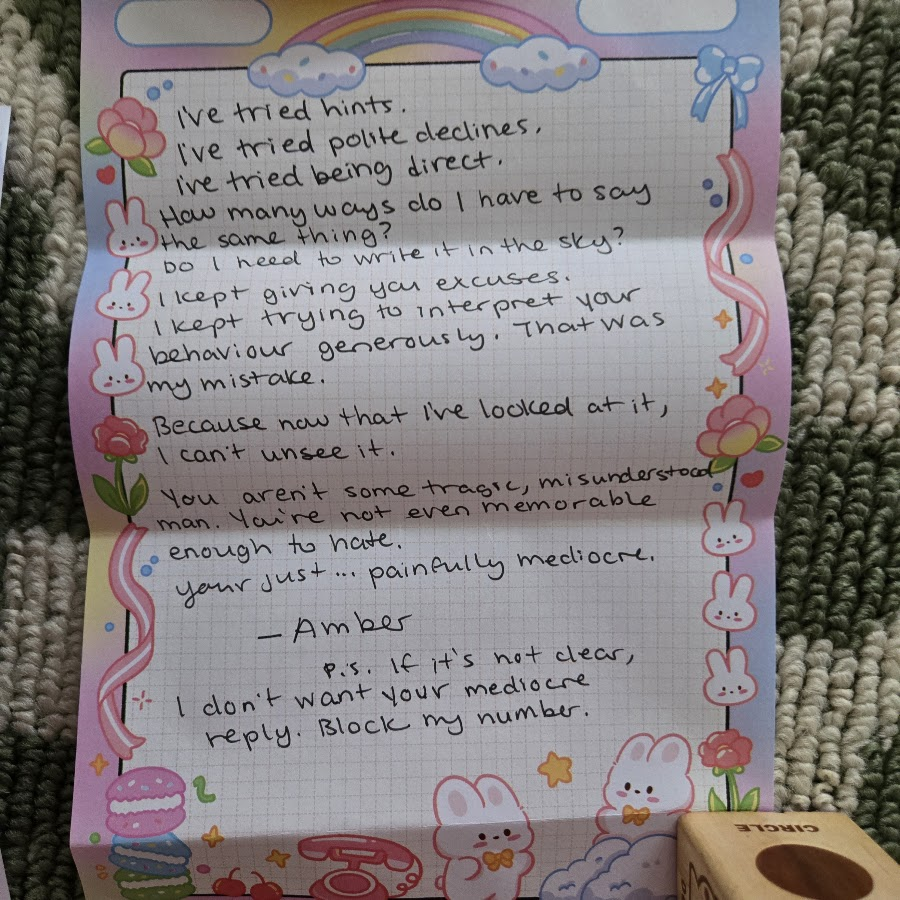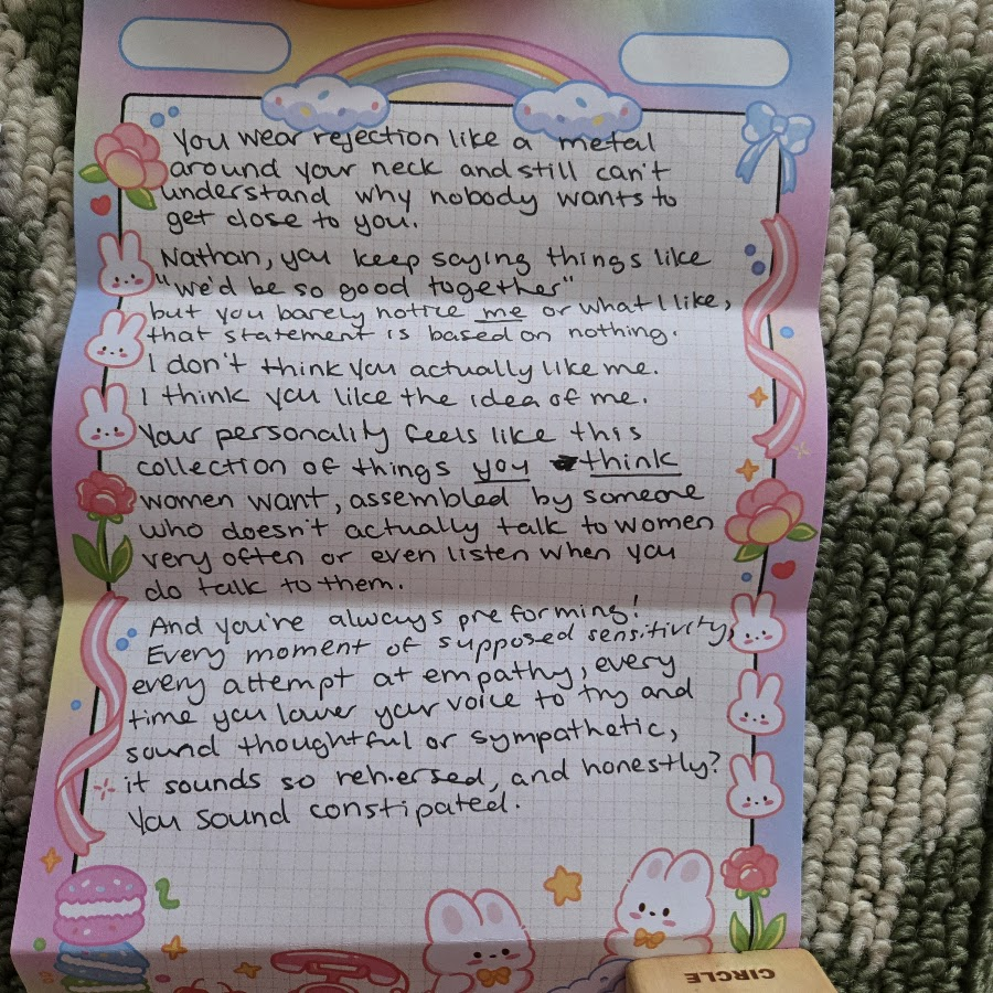 Warning: This letter is highly corrosive. Handle with gloves, or at least with a healthy sense of self awareness.